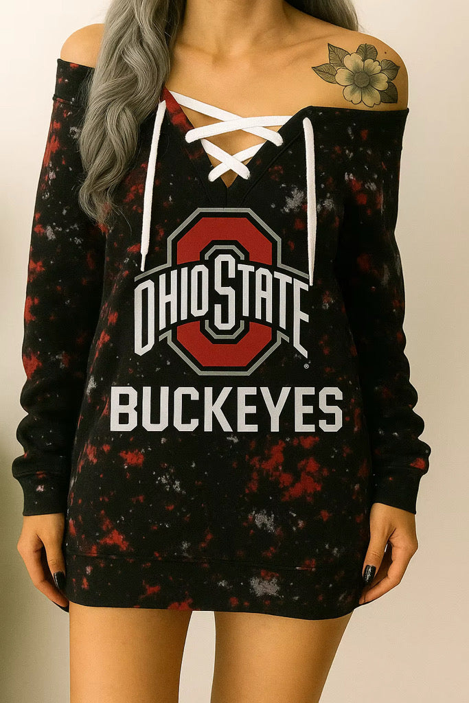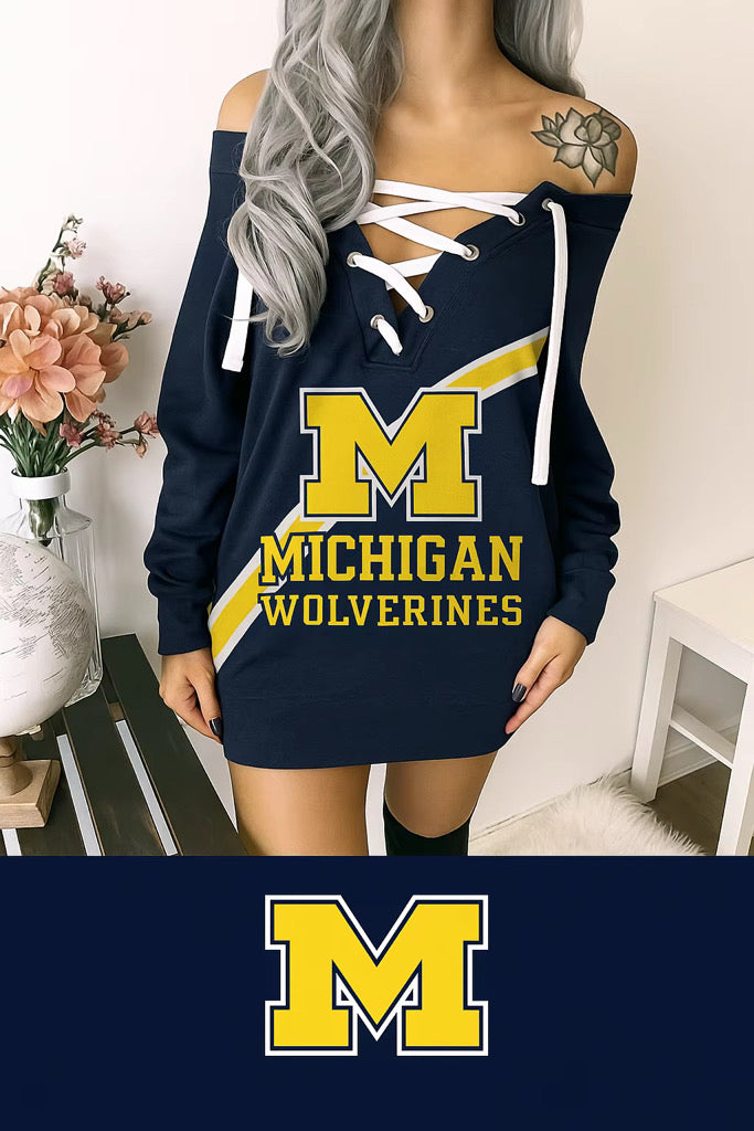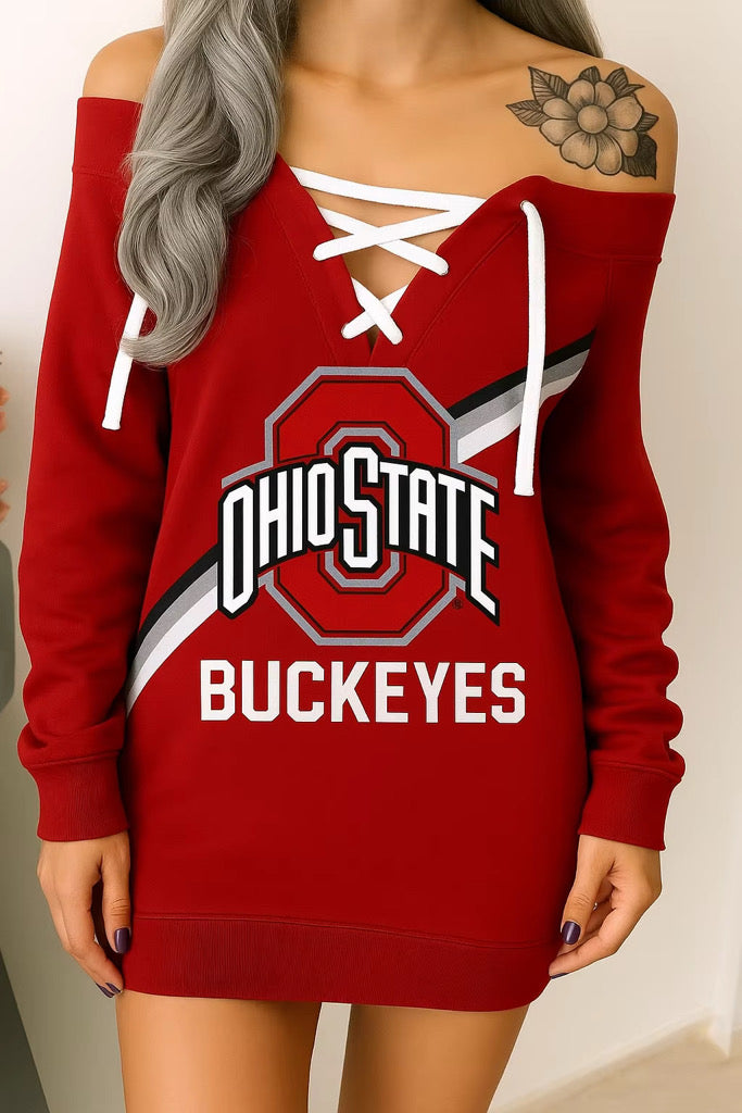Women lace up NFl sweater dress